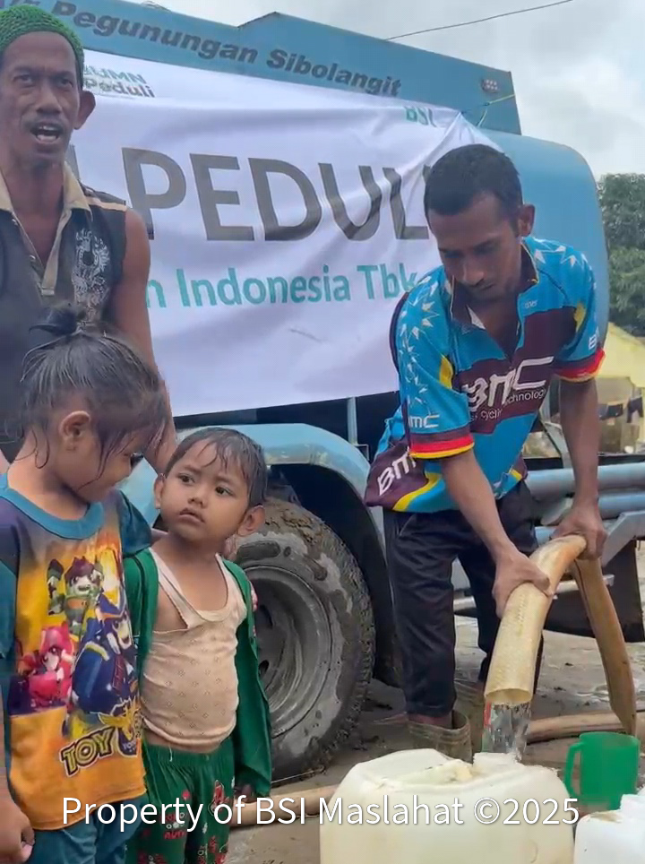 Setelah bantuan 105 ton logistik, penyediaan dapur umum, penyediaan akses komunikasi starlink, relawan kemanusiaan dan posko kesehatan. Hari ini (18/12),BSI bersama BSI Maslahat kembali mengirimkan 25 tangki air bersih. Pascabencana yang melanda sejumlah wilayah di Aceh, kebutuhan air bersih menjadi salah satu kebutuhan paling mendesak bagi masyarakat terdampak. Kerusakan infrastruktur air, tercemarnya sumber air, serta terbatasnya akses distribusi membuat ribuan warga kesulitan memperoleh air layak untuk minum, memasak, dan kebutuhan sanitasi.