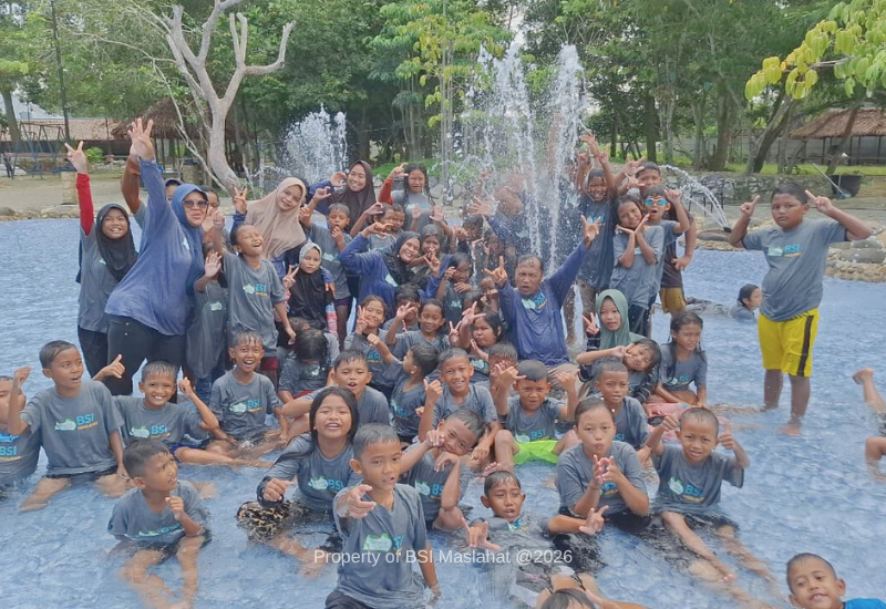 Aceh, 17 Januari 2026 – BSI Maslahat membangun keceriaan anak korban banjir Aceh melalui aktivitas bermain dan pendampingan psikososial. Sebanyak 250 anak diajak menikmati kegiatan rekreatif di Mutiara Water Park, Langsa, pada Sabtu (17/1). Anak-anak bermain air di wahana yang aman dan terpantau oleh relawan terlatih. Selain itu, mereka juga mengikuti sesi pendampingan psikososial berupa dongeng untuk membantu memulihkan rasa aman dan mengurangi trauma pascabencana. Kegiatan ini turut dilengkapi dengan pemberian perlengkapan sekolah, meliputi tas, buku tulis, buku gambar, alat tulis, botol minum, dan tempat makan sebagai dukungan untuk mengembalikan semangat belajar anak terdampak banjir.