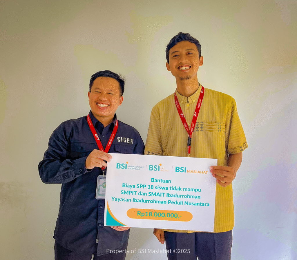 Tasikmalaya, 08 Agustus 2025 – Sebagai bentuk kepedulian terhadap dunia pendidikan, BSI Maslahat menyalurkan bantuan dana pendidikan kepada  siswa tidak mampu di dalam naungan Yayasan Ibadurrohman Peduli Nusantara. Yayasan tersebut, menaungi sekolah dari jenjang TKIT, SDIT, SMPIT hingga SMAIT. Bantuan ini ditujukan bagi siswa tidak mampu, yang sebelumnya kesulitan melanjutkan pendidikan karena terkendala biaya.