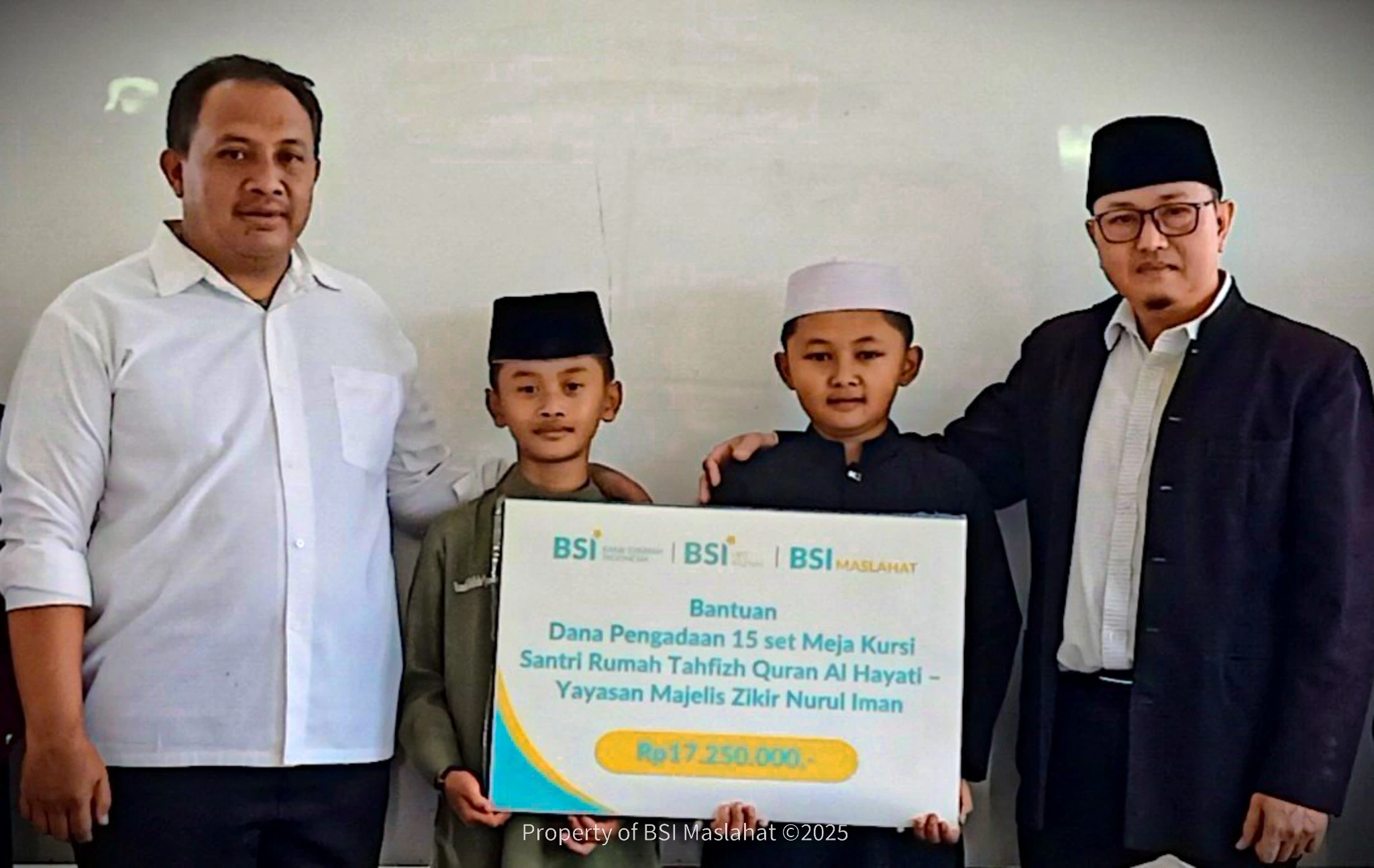 Garut, 3 September 2025 – Bangun Sejahtera Indonesia Maslahat (BSI Maslahat) menyalurkan bantuan sarana dan prasarana pendidikan untuk Rumah Tahfizh Quran Al Hayati di Kabupaten Garut. Bantuan tersebut berupa 15 set meja dan kursi yang akan digunakan sebagai penunjang kegiatan belajar para santri.