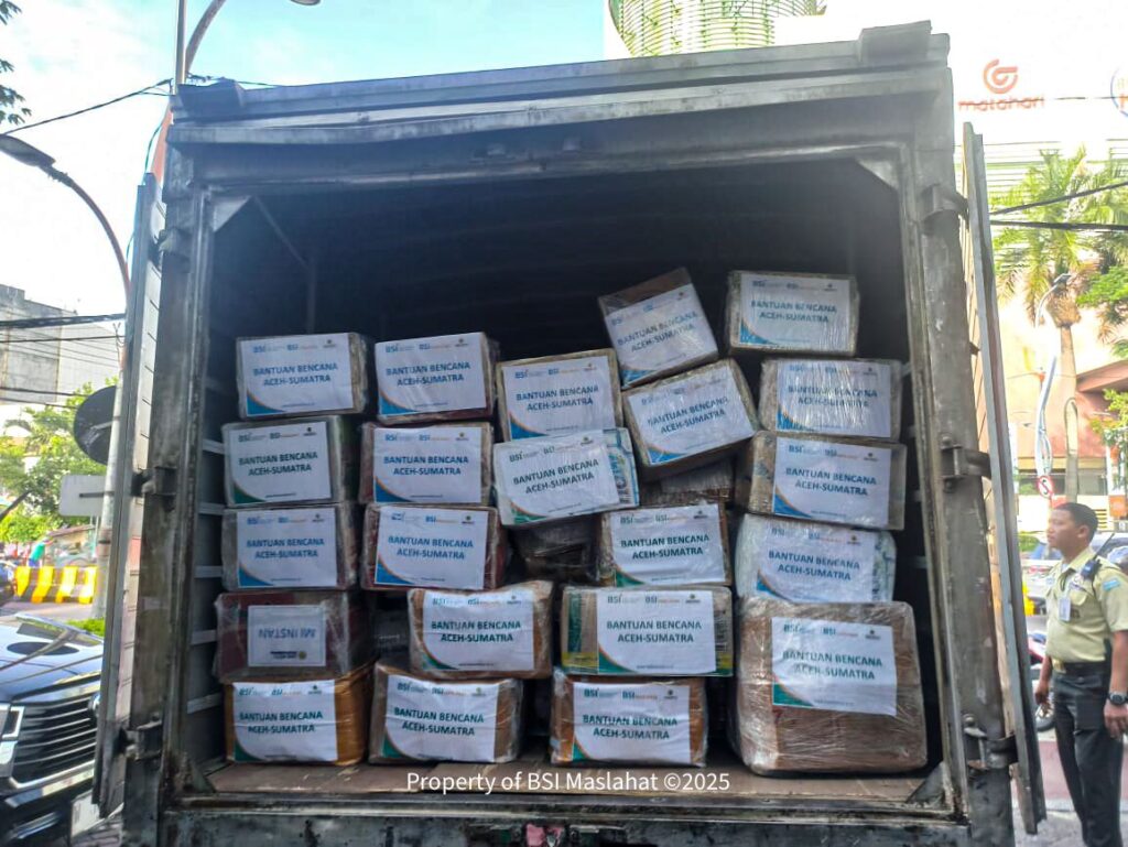 Surabaya, 15 Desember 2025 – BSI Maslahat bersama Forum Zakat (FOZ) Jawa Timur berkolaborasi menyalurkan bantuan kemanusiaan untuk warga terdampak banjir dan longsor di Aceh dan Sumatra. Bantuan berupa kebutuhan pokok seberat 103 ton senilai Rp2,3 miliar dikirim melalui jalur laut menggunakan kapal Meratus sebagai dukungan dari Ikatan Pengusaha Cargo Nasional (IPCN). Bantuan diberangkatkan dari Depo Pelabuhan Tanjung Perak Surabaya menuju Pelabuhan Belawan, Medan.