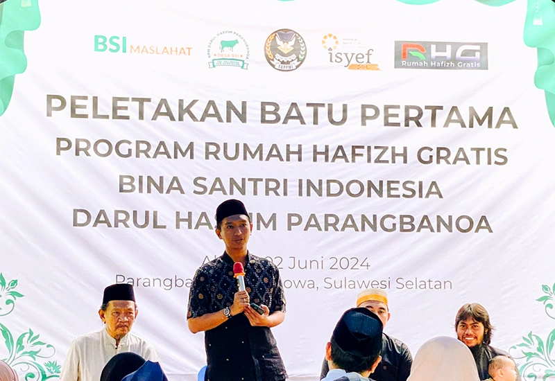 BSI Maslahat bekerjasama YAPPMI, ISYEF dan RHG bangun Rumah Hafidz Gratis di Gowa. Telah dilakukan peletakkan batu pertama pembangunan Program Rumah Hafidz Gratis Bina Santri Indonesia Darul Hasyim Parangbanoa pada Minggu, 2 Juni 2024. Pembangunan rumah hafidz gratis ini berlokasi di Desa BSI Parangbanoa, Gowa, Sulawesi Selatan. Nanti nya asrama dan sarana penunjang lain akan berdiri di tanah wakaf sementra milik nadzir BSI Maslahat.