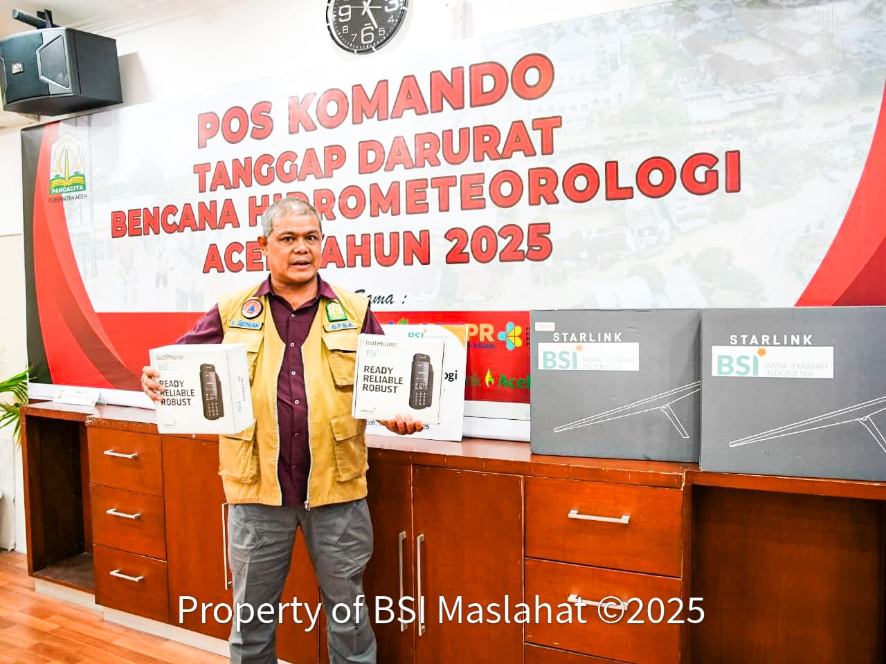 Dalam respon cepat tersebut, BSI Maslahat bersama BSI menyerahkan bantuan perangkat komunikasi darurat kepada Pemerintah Provinsi Aceh di Kantor Gubernur Aceh. Bantuan meliputi Starlink dan telepon satelit yang berfungsi menjaga kelancaran komunikasi di wilayah yang sulit dijangkau. Kehadiran perangkat ini diharapkan mempercepat koordinasi antarpetugas dalam memperluas jangkauan penanganan bencana. Selain itu, bantuan khusus lainnya juga diberikan kepada mahasiswa terdampak di UIN Ar-Raniry Aceh sebagai bentuk perhatian kepada kelompok rentan yang turut merasakan dampak bencana.