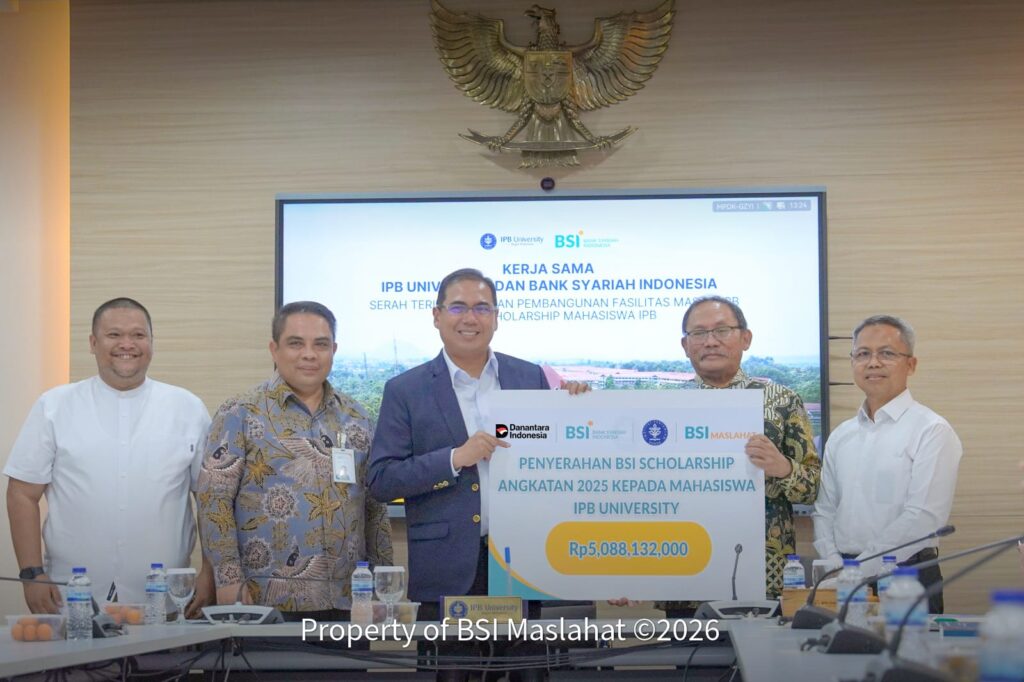 Bogor, 26 Januari 2026 – BSI Maslahat, Bank Syariah Indonesia (BSI), dan Institut Pertanian Bogor (IPB) berkolaborasi untuk melakukan komitmen bersama dalam memperluas akses pendidikan yang inklusif dan memperkuat sarana keagamaan. Komitmen tersebut diwujudkan dalam kegiatan serah terima bantuan yang diselenggarakan di Kampus IPB pada Senin (26/1), sebagai bagian dari upaya berkelanjutan dalam mendukung mahasiswa dan ekosistem pendidikan tinggi di Indonesia.