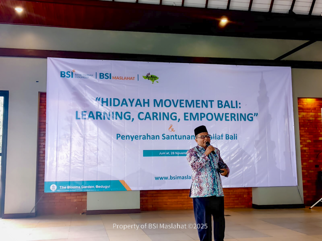 Bali, 01 Desember 2025 – BSI Maslahat perkuat iman kepada 100 muallaf dan guru muallaf dalam kegiatan bertema “Hidayah Movement Bali: Learning, Caring, Empowering” di The Blooms Garden, Bedugul, Jumat (28/11). Acara ini menjadi wujud kepedulian terhadap komunitas muallaf yang merupakan kelompok minoritas di Bali.
