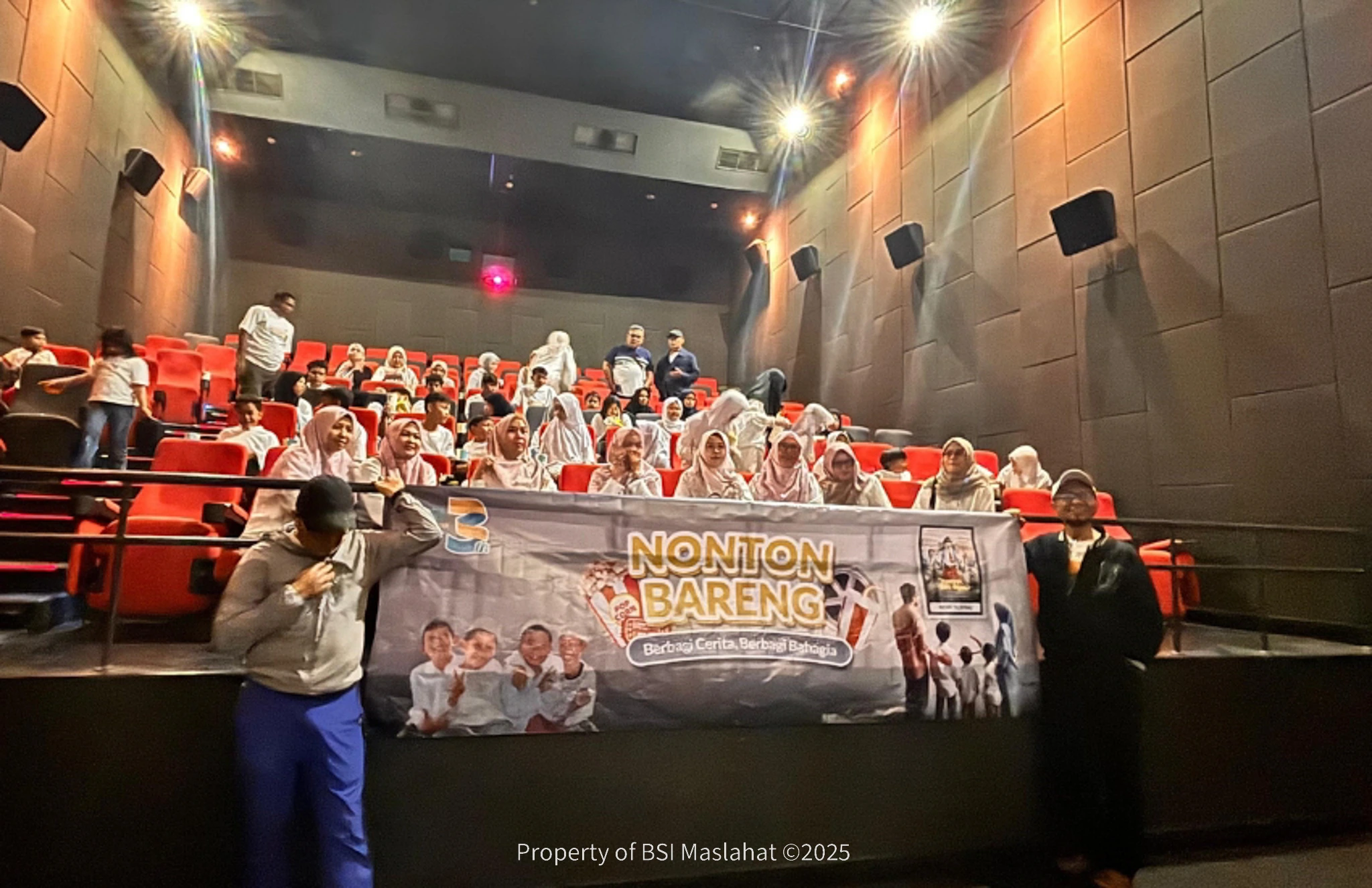 Bandung, 22 Agustus 2025 – Bangun Sejahtera Indonesia Maslahat (BSI Maslahat) bersama PT Bank Syariah Indonesia (BSI) Region 6 Bandung, menggelar kegiatan Nonton Bareng Yatim film “Panggil Aku Ayah” di CGV Cinemas, BEC Mall, Bandung pada Senin, 18 Agustus 2025. Kegiatan ini dilaksanakan dalam rangka memeriahkan milad ke-3 BSI Maslahat yang dihadiri oleh 33 anak yatim.