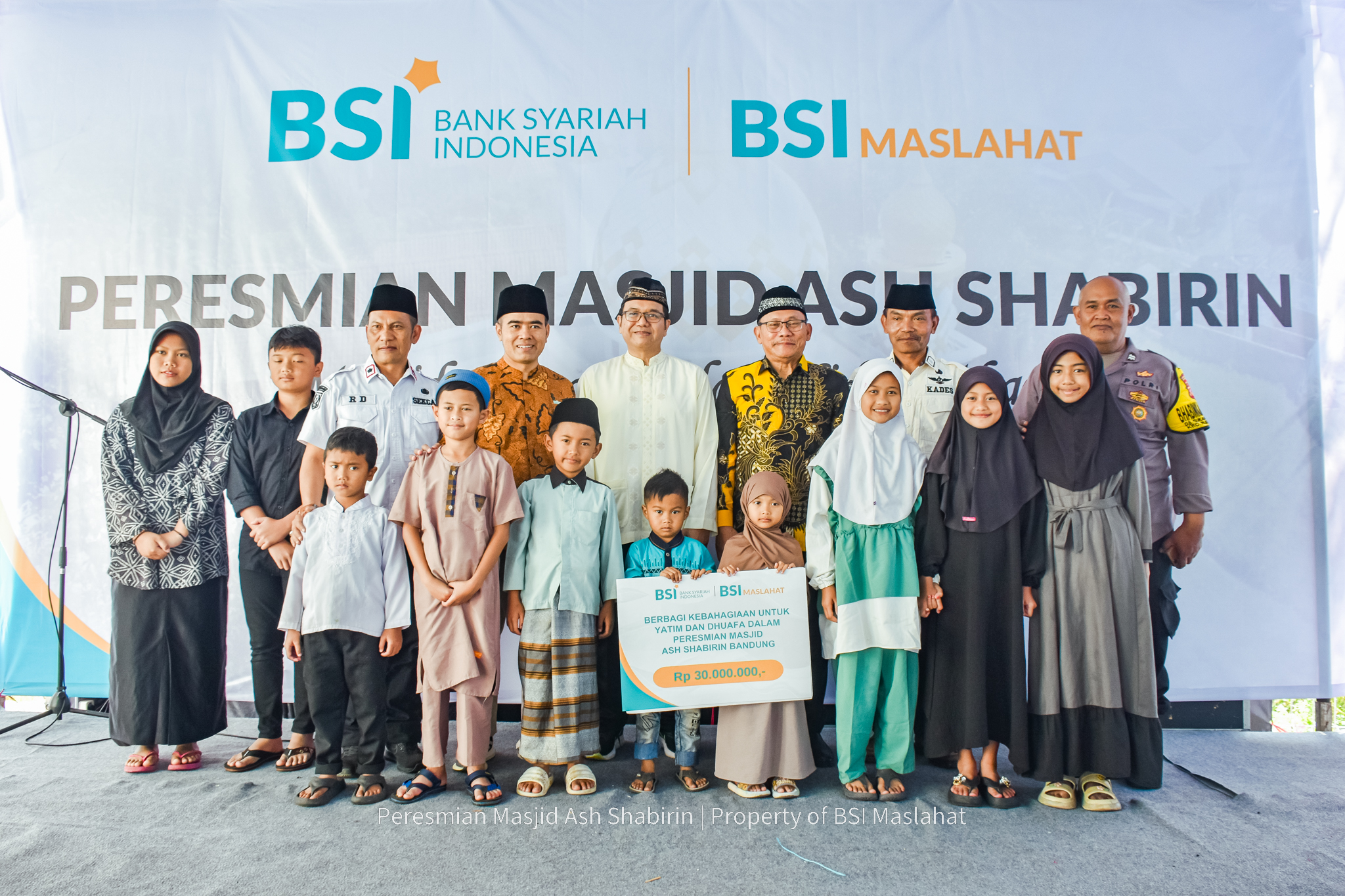 Bandung, 7 Agustus 2024. BSI Maslahat meresmikan pembangunan Masjid Ash-Shabirin di Desa Cukanggenteng, Jalan Raya Ciwidey Bandung. Pembangunan masjid ini berasal dari dana wakaf muqayyad atas nama Alm. H. Drs. Sabardi Berth Bin H. Ono K. Martawidjaja. Peresmian ini dilaksanakan untuk memperkenalkan Masjid Ash Shabirin kepada masyarakat, selain itu juga untuk meningkatkan kesadaran akan literasi wakaf, serta memberikan manfaat luas bagi masyarakat sekitar melalui Masjid.