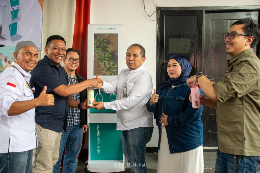 BSI Maslahat menyediakan mesin air minum gratis berkapasitas tangki 1.900 liter per hari atau setara dengan 100 galon per hari, yang telah lolos uji layak minum dan tersertifikasi oleh Kementerian Kesehatan Republik Indonesia.