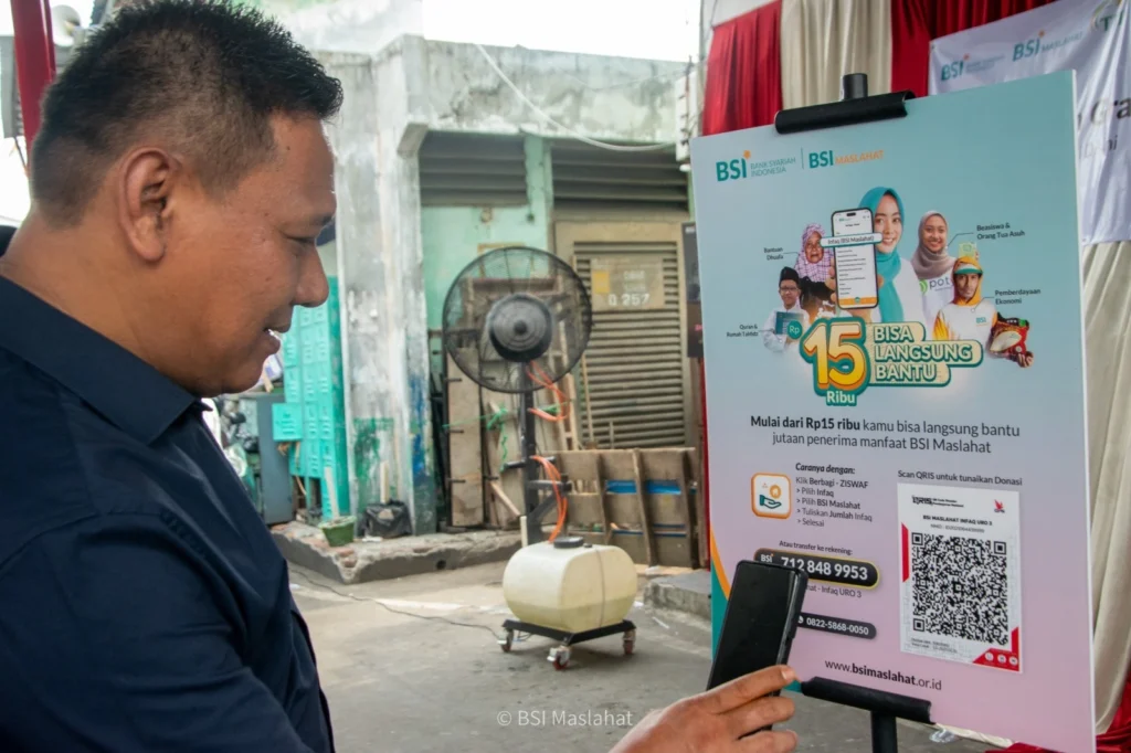 BSI Maslahat menyediakan mesin air minum gratis di Blok F Pasar Tanah Abang, Jakarta. Inisiatif ini merupakan bagian dari komitmen BSI Maslahat dalam memberikan kemudahan akses air minum bersih bagi para pedagang dan pengunjung pasar.
