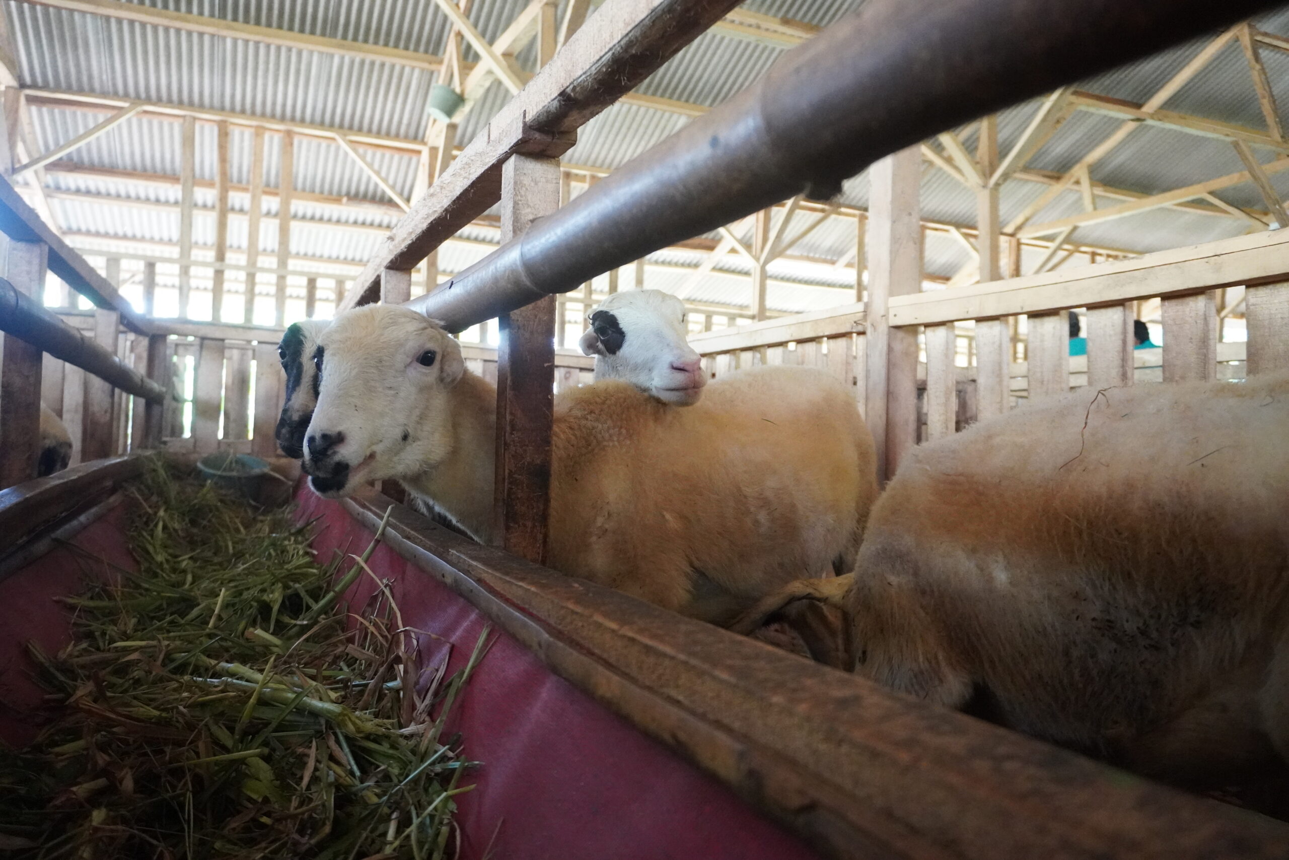 Jun Nurhayati, salah satu warga Desa BSI Lebak Cikaracak, dulunya bekerja di pabrik sepatu selama 14 tahun. “Mata saya pernah sakit, efek samping kerja di pabrik sepatu. Penglihatan saya tidak seawas dulu lagi,” kenangnya. Setelah pulang kampung tanpa pekerjaan, Jun mendapat informasi tentang program peternakan domba di desanya.