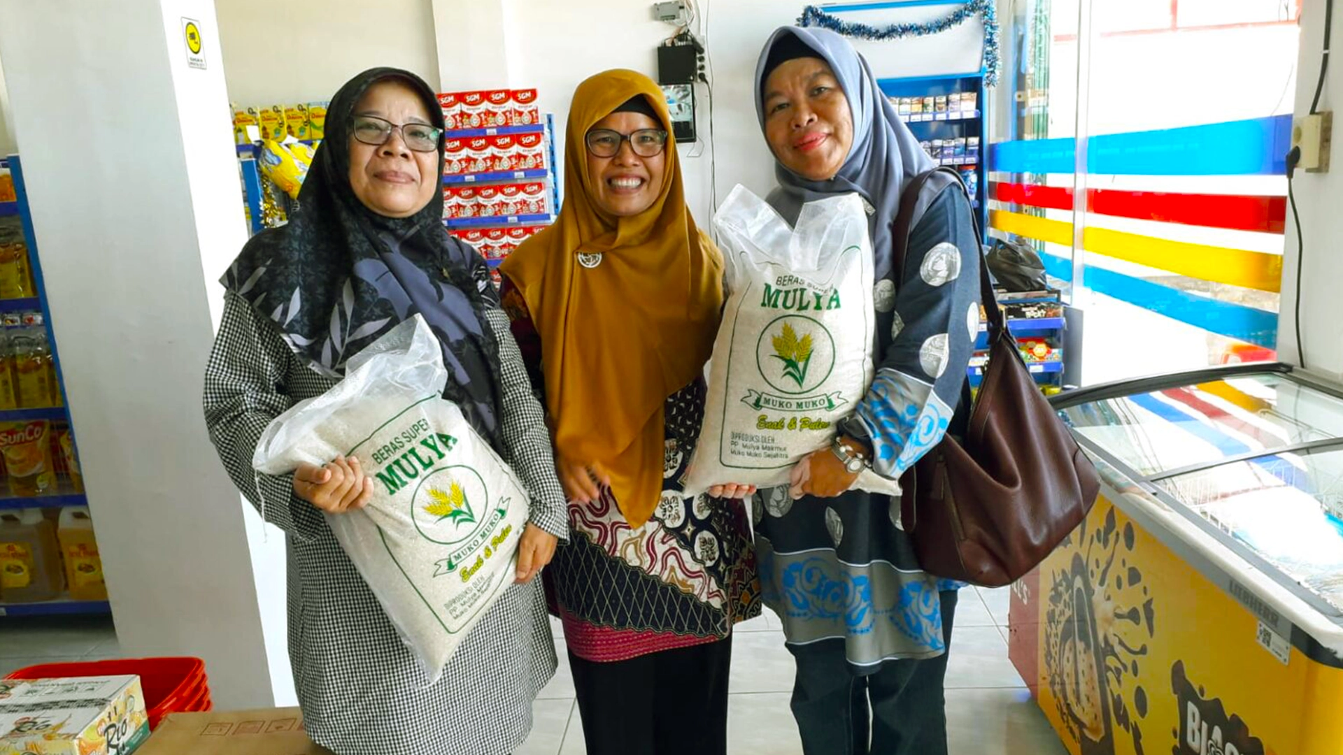 Beras Mulya produk Desa BSI Mukomuko hadir di supermarket Provinsi, Bengkulu terlihat para pelanggan sedang membeli produk tersebut