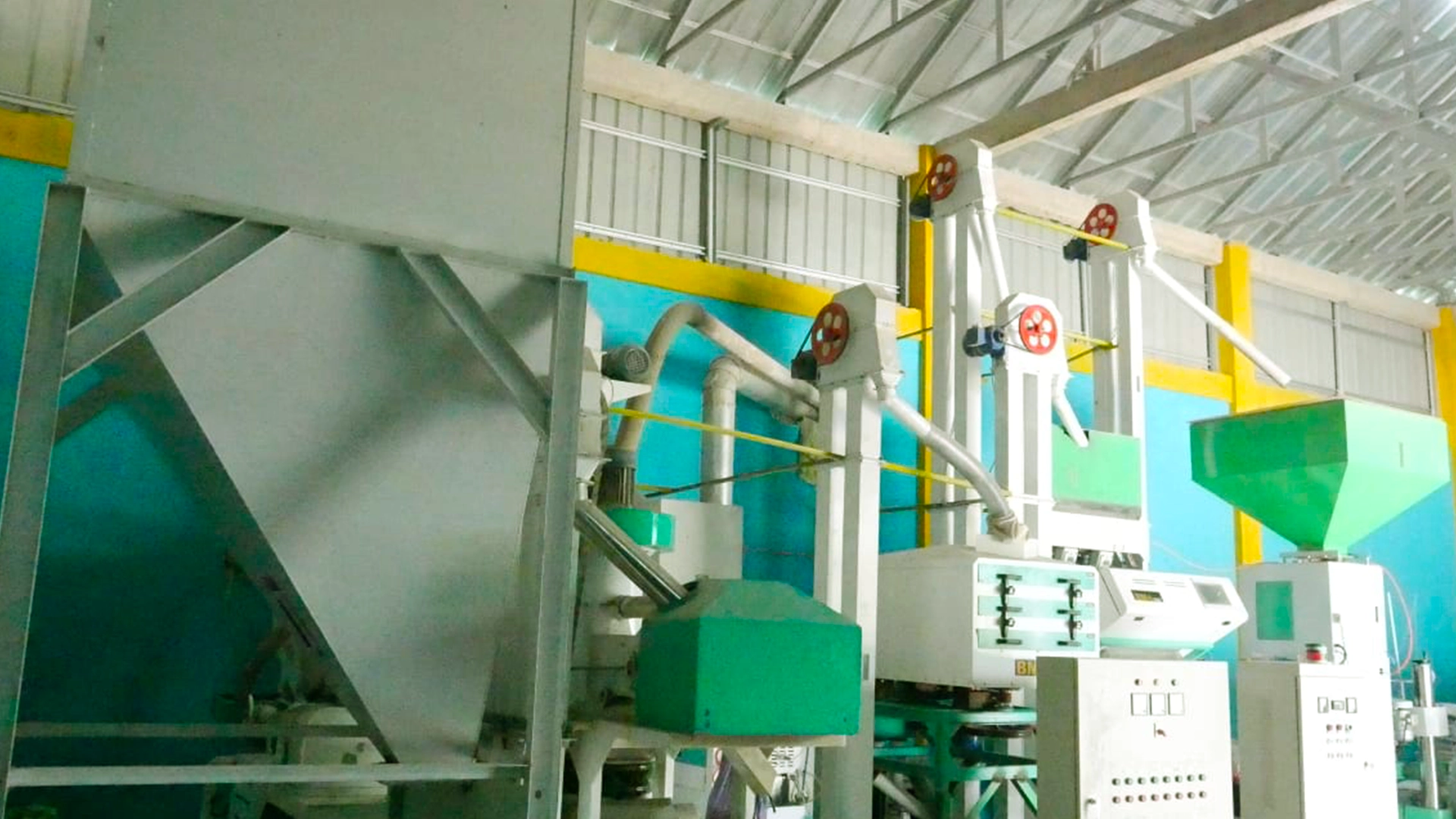 Mesin giling kapasitas 1 ton per jam yang terdiri dari Cruiser, Destoner, Husker, Sparator, Polisher, Water Polisher, Greader, Color Sorter timbangan otomatis.
