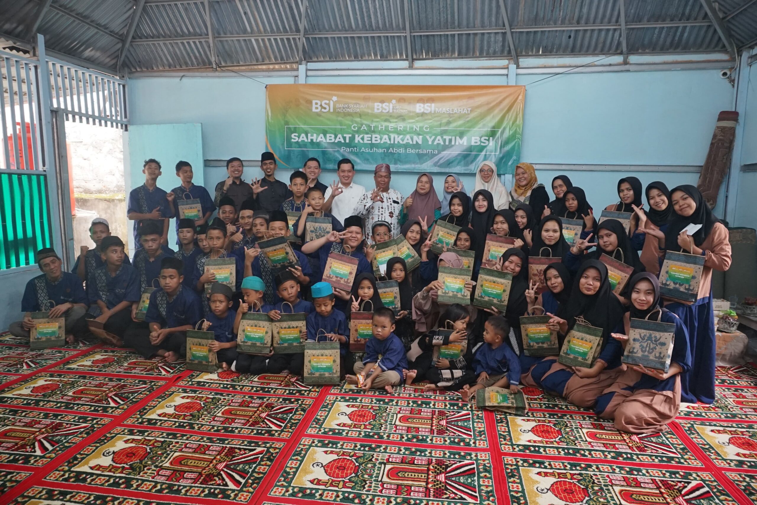 Hadir dalam acara ini AOSM Area Palembang, Yudi Krisnanda; AOSS Area Palembang, Ardi Gunawan; Ketua Panti Asuhan Abdi Bersama, Susneli; dan Manajer BSI Maslahat URO Palembang, Anang Suroso.