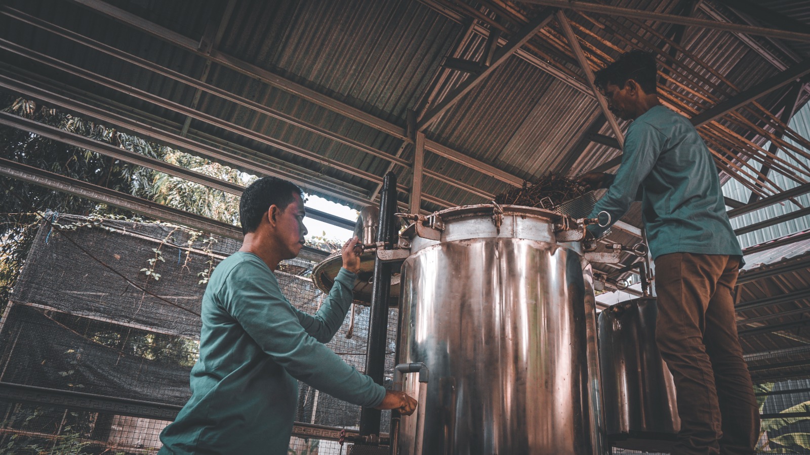 M. Ali, 66 tahun seorang penerima manfaat sekaligus operator penyulingan minyak sentra, mengisahkan perjalanan transformasi desanya. “Kelompok tani kami dibentuk pada 23 Maret 2023,” ujarnya. “Saat itu, harga minyak nilam hanya sekitar Rp 500.000 per kilogram. Kini, harganya sudah mencapai Rp 1.700.000 per kilogram.”
