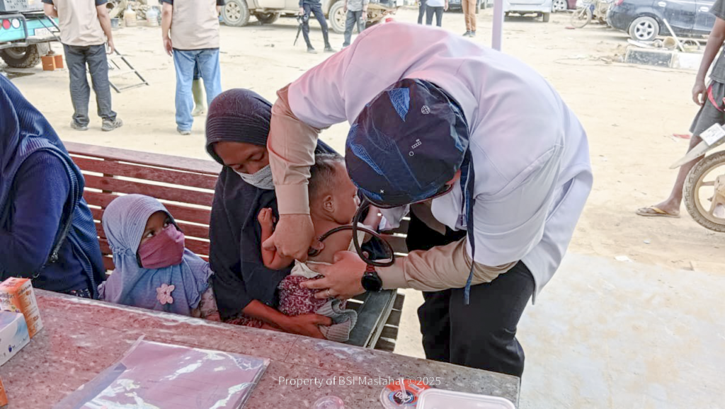 BSI Maslahat mengirim 2 dokter, 2 perawat, dan 2 apoteker untuk melayani masyarakat terdampak. Sebanyak 222 orang menjalani pemeriksaan kesehatan untuk mendeteksi kondisi tubuh sehingga tindakan medis dapat segera diberikan untuk mencegah penyakit berkembang lebih lanjut. Tindakan pemeriksaan kesehatan terdiri dari pemeriksaan tekanan darah, konsultasi dokter, pengecekan metabolik pasien, tindakan lanjutan, dan pemberian obat-obatan. Diharapkan, hasil dari pemeriksaan ini dapat menjadi dorongan bagi masyarakat untuk mampu bangkit dan menjalani hidup seperti sedia kala.