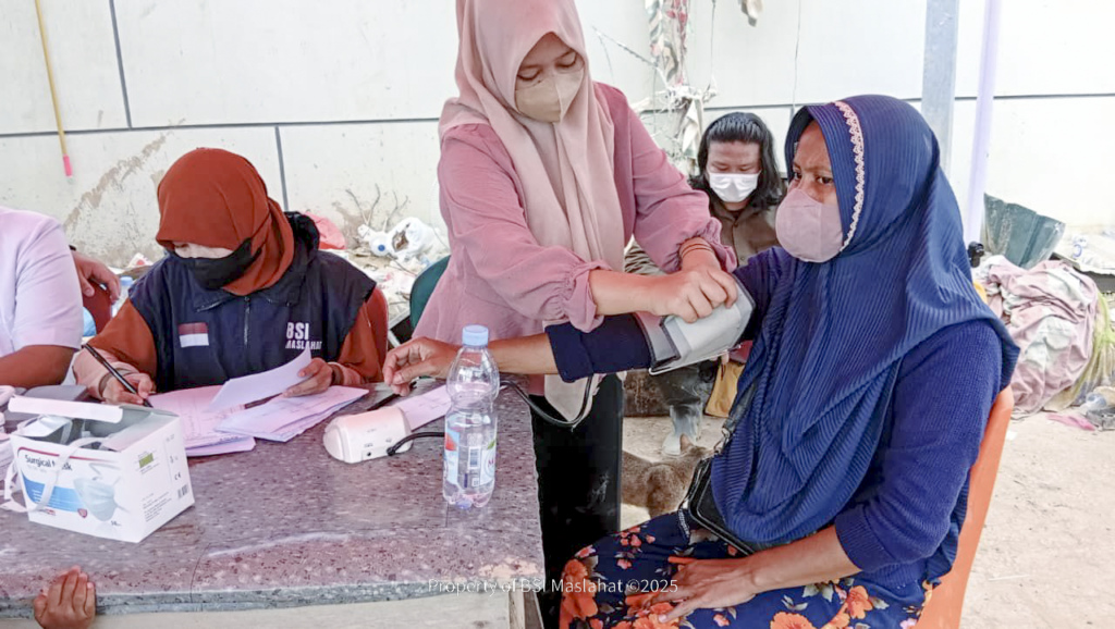 BSI Maslahat mengirim 2 dokter, 2 perawat, dan 2 apoteker untuk melayani masyarakat terdampak. Sebanyak 222 orang menjalani pemeriksaan kesehatan untuk mendeteksi kondisi tubuh sehingga tindakan medis dapat segera diberikan untuk mencegah penyakit berkembang lebih lanjut. Tindakan pemeriksaan kesehatan terdiri dari pemeriksaan tekanan darah, konsultasi dokter, pengecekan metabolik pasien, tindakan lanjutan, dan pemberian obat-obatan. Diharapkan, hasil dari pemeriksaan ini dapat menjadi dorongan bagi masyarakat untuk mampu bangkit dan menjalani hidup seperti sedia kala.