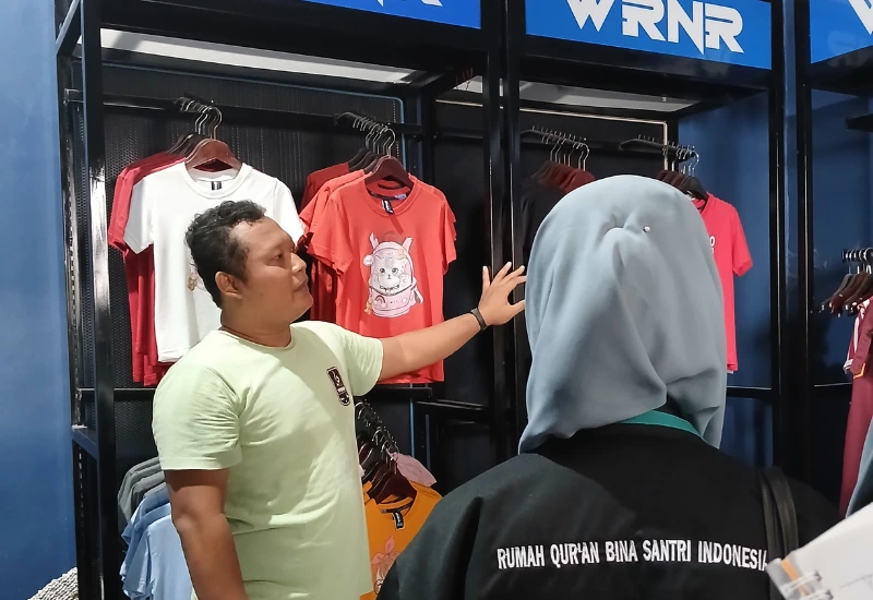 Di konveksi WRNR para santri belajar memotong kain, menjahit, memasang kancing hingga mengemas produk untuk siap dipasarkan secara langsung dengan dipandu oleh para karyawan konveksi.